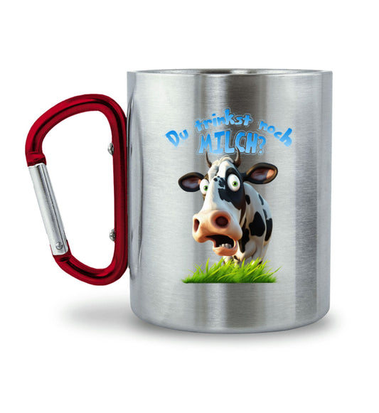 Du trinkst noch Milch? - Edelstahltasse mit Karabinergriff